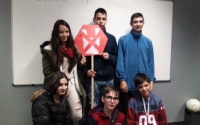 Os alunos associaram a imagem do sinal STOP a um saco plástico, procurando transmitir a ideia de que a sua utilização deve ser drasticamente reduzida.