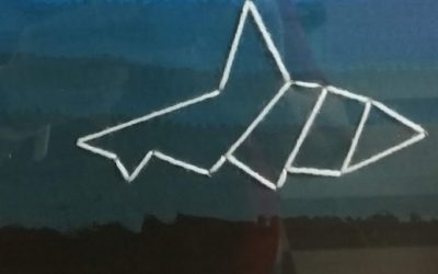 Representação de animais marinhos construídos em origami, posteriormente desenhados geometricamente (vector) e finalmente bordados em cartão reciclável previamente pintado a guache com cores intermédias. Exposição de trabalhos no átrio da escola sede de agrupamento.