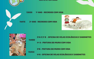24 de abril Abertura da Semana Eco – Cartaz de divulgação da Semana ECO Apresentação e divulgação do Eco-código 2023 – Vídeo de divulgação do Eco-código pelos Eco Conselheiros, no âmbito do Programa Eco-Escolas https://youtu.be/Mn1t3mc5uw4 26 de abril A correr vou reciclar – todas as turmas, no âmbi …
