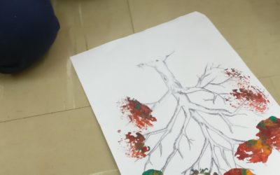 Colorir com papel de alumínio sobre uma folha de papel com a impressão de um tronco de árvore Utilizar cores característ …