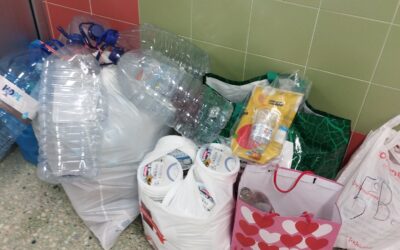 Os alunos recolheram embalagens de plástico e de metal, após a entrega nas máquinas de recolha dos supermercados, a verb …