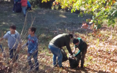 Todos os alunos de duas turmas limparam a mata da escola e as áreas adjacentes à escola.
