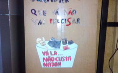Os alunos transformaram uma caixa de papel usada num contentor de recolha de roupa. Este contentor foi posteriormente co …