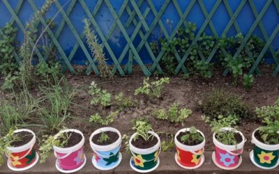Esta Primavera, as crianças tiveram oportunidade de plantar ervas aromáticas em vasinhos reciclados.