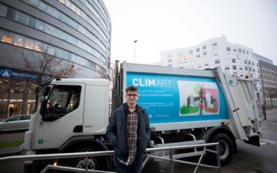 As imagens dos justos vencedores do concurso ClimArt junto dos veículos de recolha de resíduos, que circulam atualmente …
