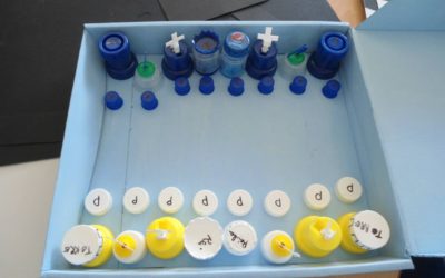 Com tampas de diversas formas fizeram-se as peças do xadrez. Com tiras de cartolina branca e preta, entrelaçadas fizemos …