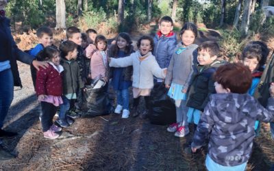 As crianças do Pré escolar foram apanhar lixo na floresta circundante à escola. Todas se empenharam ao máximo, calçaram …
