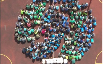 As 11 turmas da escola de Cotovia, representaram o planeta Terra, no campo de jogos da escola, através do posicionamento …