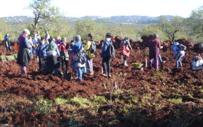 Os alunos e professores participaram na plantação de três espécies de árvores autóctones: medronheiro, azinheira e pinhe …