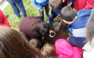 Depois de pesquisarem sobre algumas espécias vegetais, os alunos meteram as mãos na terra e plantaram árvores autóctones …