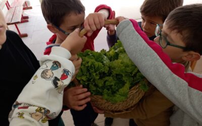 As crianças do JI da EB do Prado colheram alfaces da horta que levaram para o refeitório, para comerem em salada e acomp …
