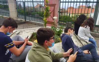 Os alunos instalaram a App iNaturalist e foram convidados a percorrer o recreio para identificar plantas e animais, desc …
