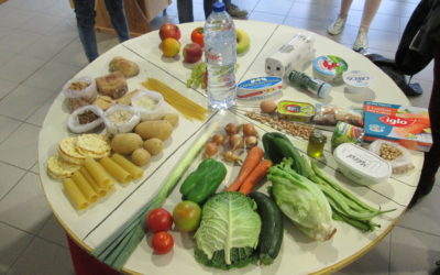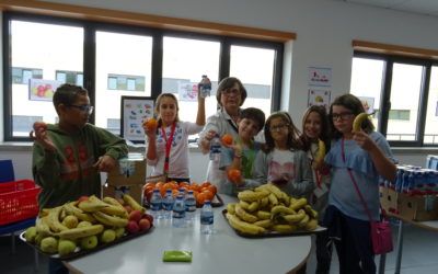 Construção de uma roda dos alimentos gigante, recolha de fruta trazida pelos alunos, para confeção de uma “Mega salada d …