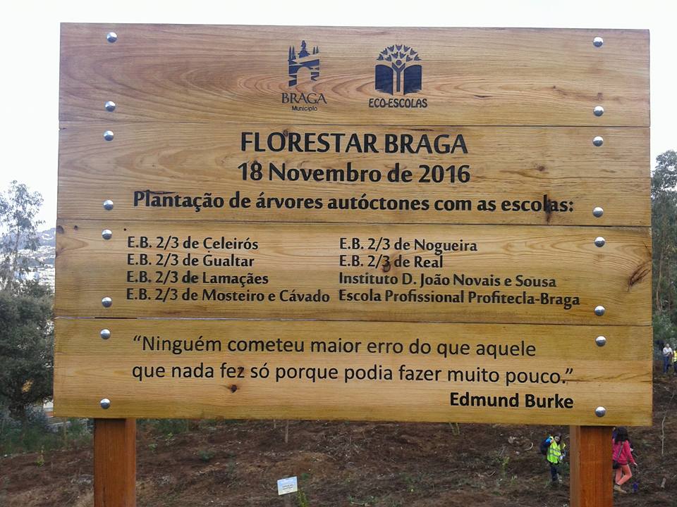 Hoje, 18 de novembro, participámos no Florestar Braga 2016, no Monte Picoto, iniciativa da CMB. Várias escolas do concelho plantaram árvores autóctones numa área recentemente ardida. O 8.* F da EB 2,3 de Real abraçou, com entusiasmo, esta causa e plantou carvalhos, castanheiros, medronheiros, azevinhos e loureiros. Foi uma tarde muito bem passada, trabalhando em defesa da floresta autóctone portuguesa.