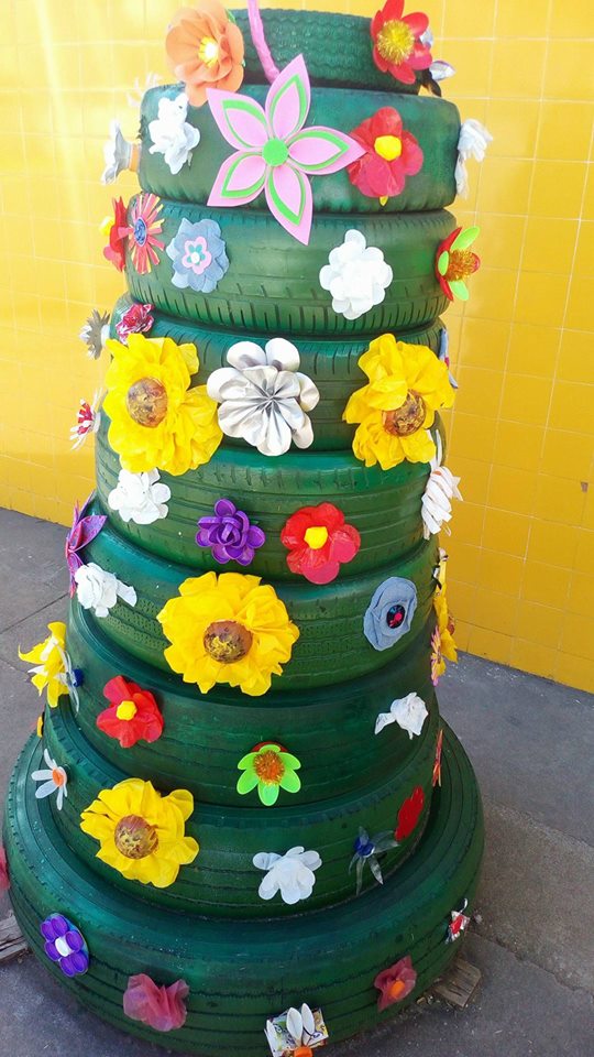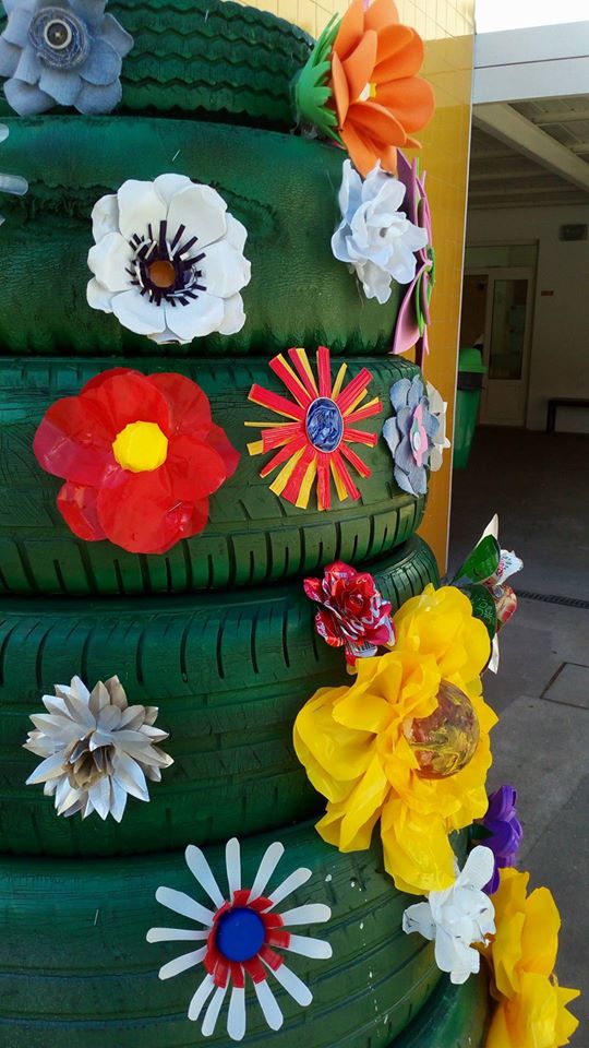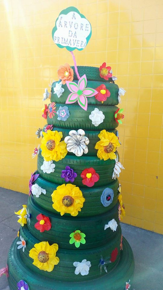 A “árvore mascote” da nossa escola foi enfeitada com motivos alusivos à chegada da primavera. Desta forma, desafiámos os vários elementos da nossa escola a elaborar uma flor apelando à reutilização de diversos materiais.