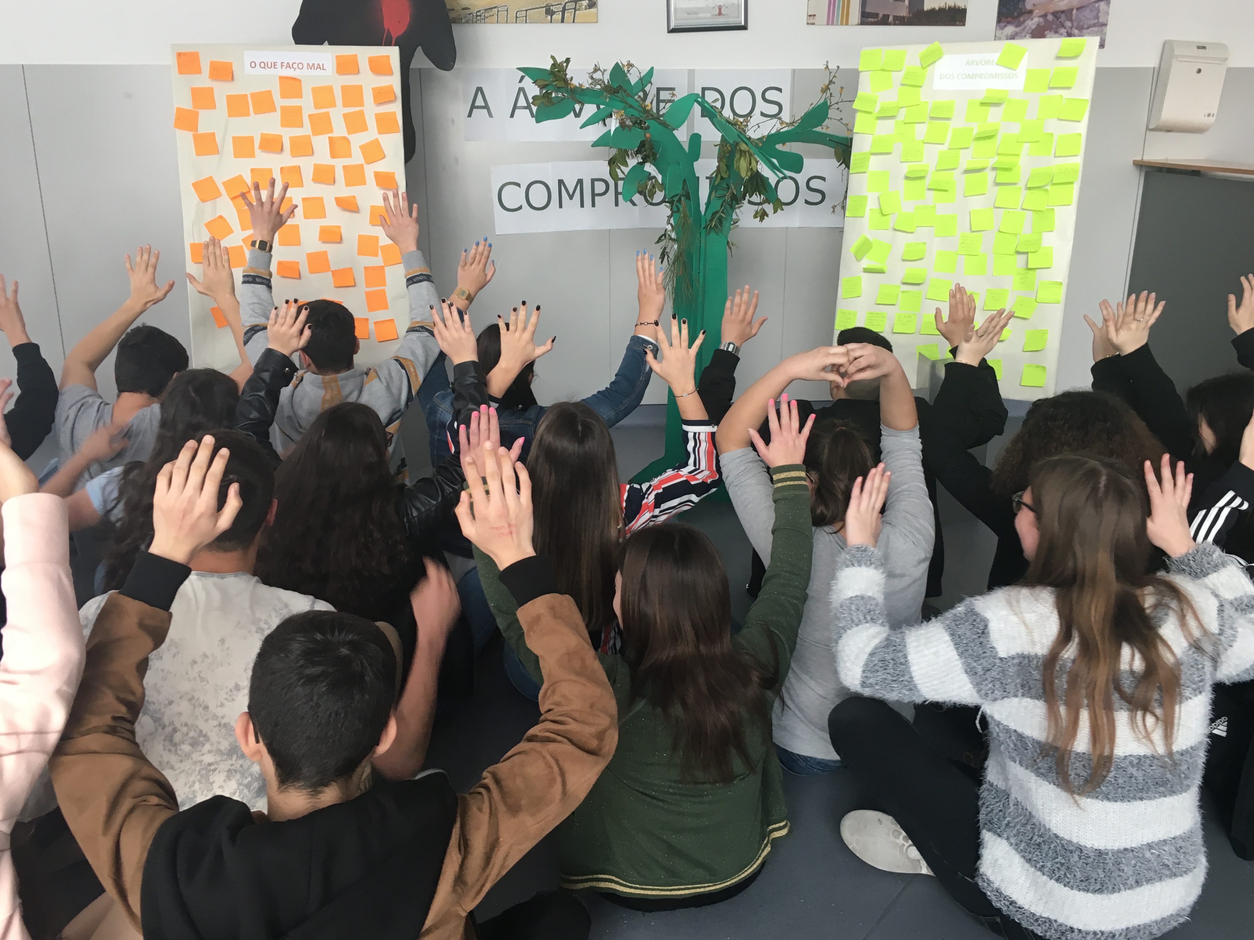 Os alunos reaproveitaram uma árvore e decoraram-na com pequenos ramos da vegetação autóctone da floresta portuguesa, etiquetando-os. Foram também utilizados dois painéis que servem para colar as atitudes inimigas do ambiente e também os compromissos para a mudança de atitude. A árvore dos compromissos vai percorrer as escolas do agrupamento assim como algumas instituições da cidade de Rio Tinto.