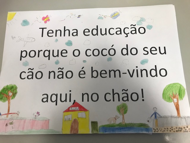 Entretanto, o grupo/turma decidiu iniciar, no dia 29 de novembro, um projeto de sensibilização aos donos de cães para que apanhem os dejetos dos seus animais. Este projeto será feito em articulação com a disciplina de Inglês. Outro projeto também em execução, diz respeito à limpeza do pátio escolar – os alunos combinaram que iriam apanhar os papéis do pátio, duas vezes por semana, chamando a atenção para os colegas, protegendo o ambiente.”