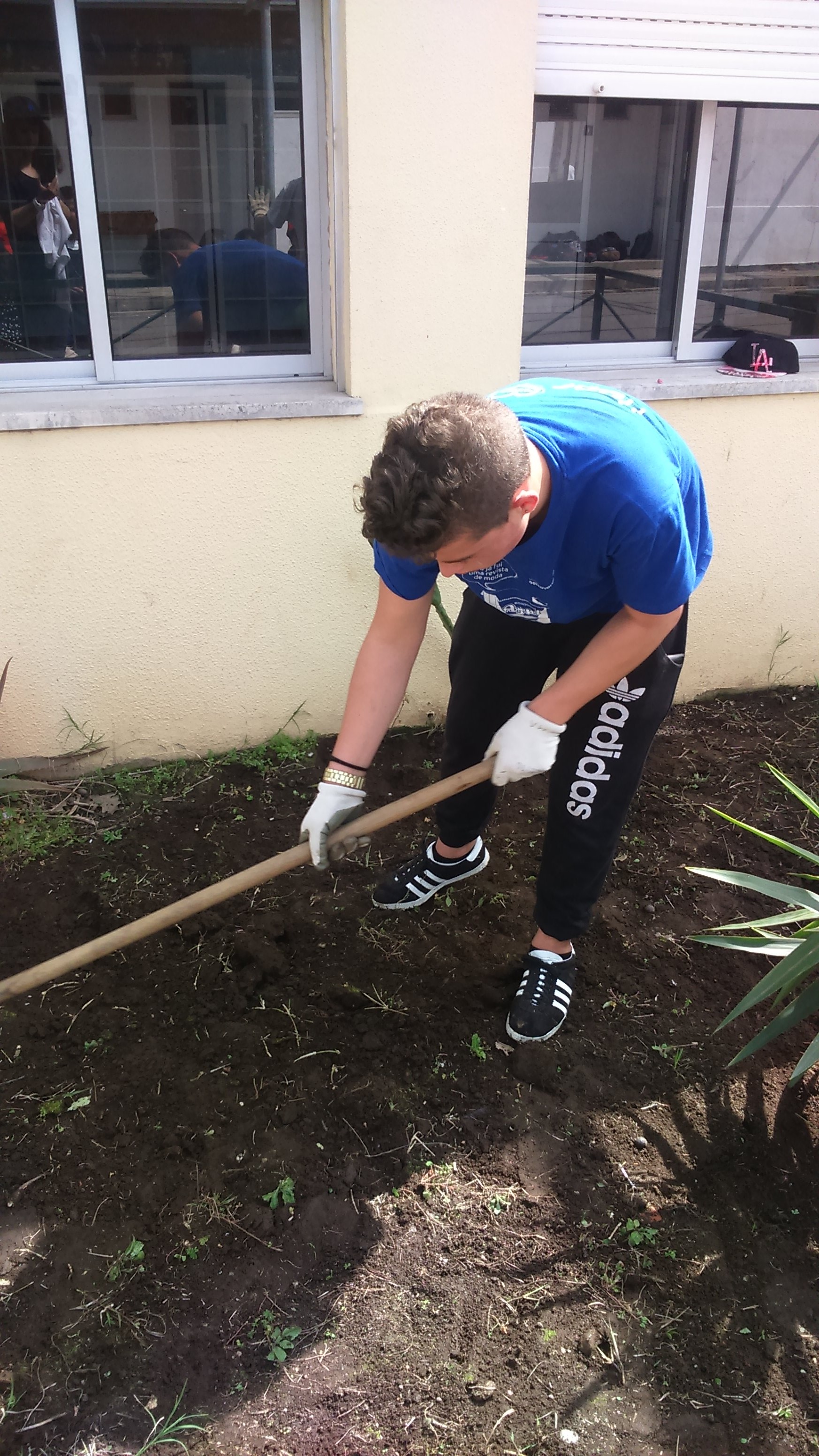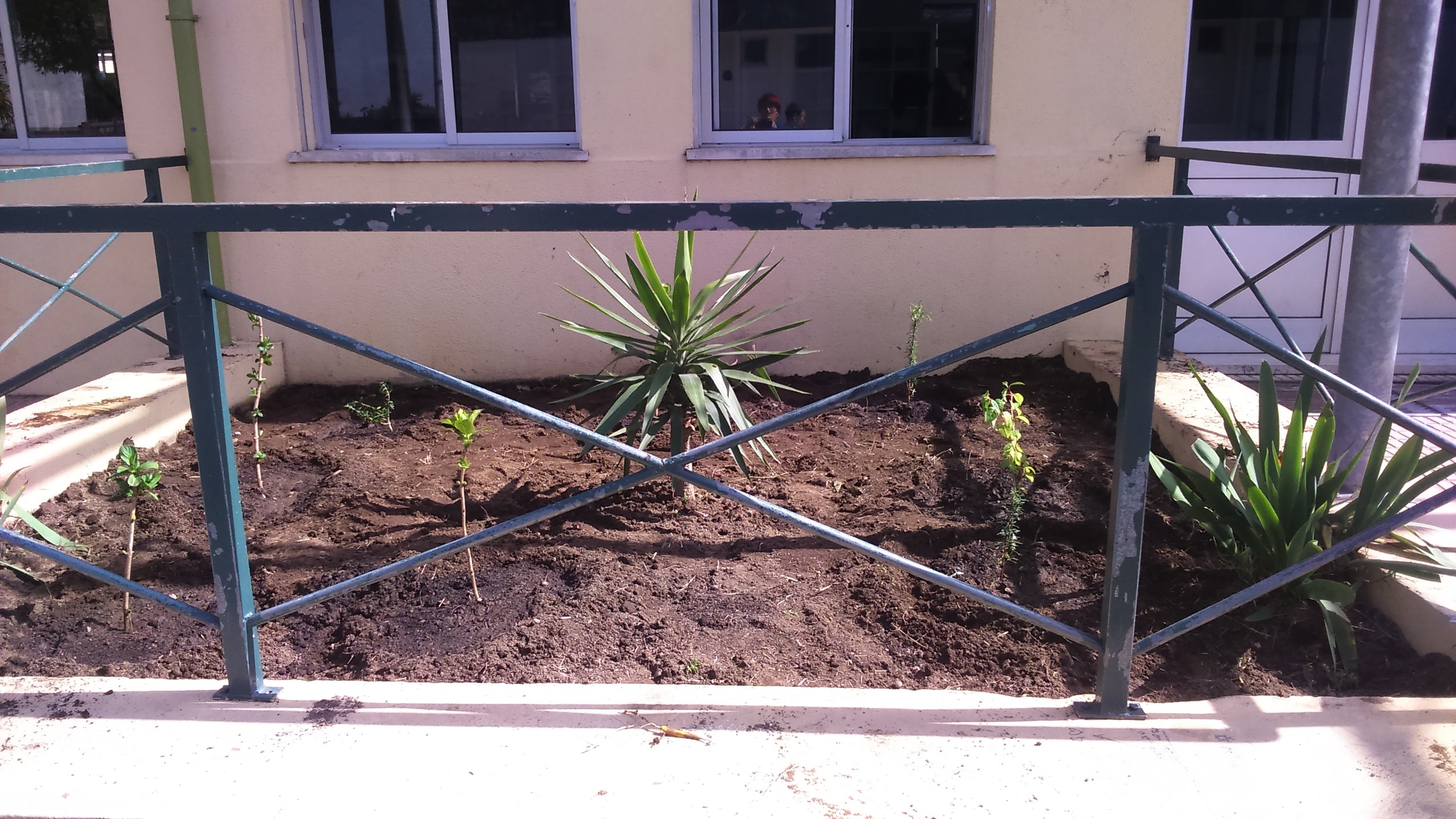 - Manutenção dos canteiros exteriores( cavar, adubar e plantar com hortenses, brincos de princesa, alecrim e oliveira);