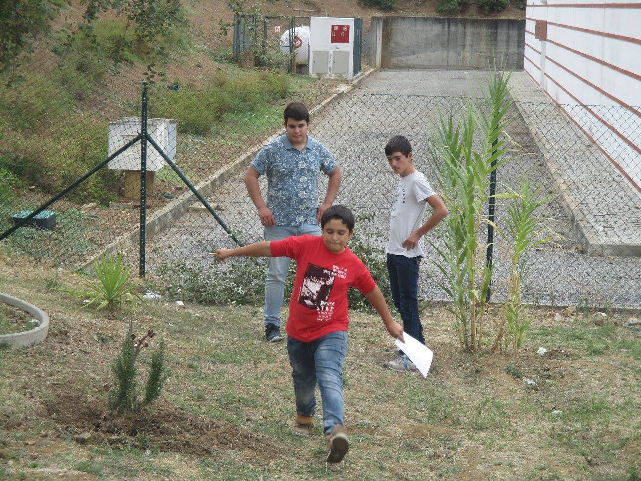 Os alunos usaram o método dos seus avós: medir, em passos, o espaço para os canteiros.