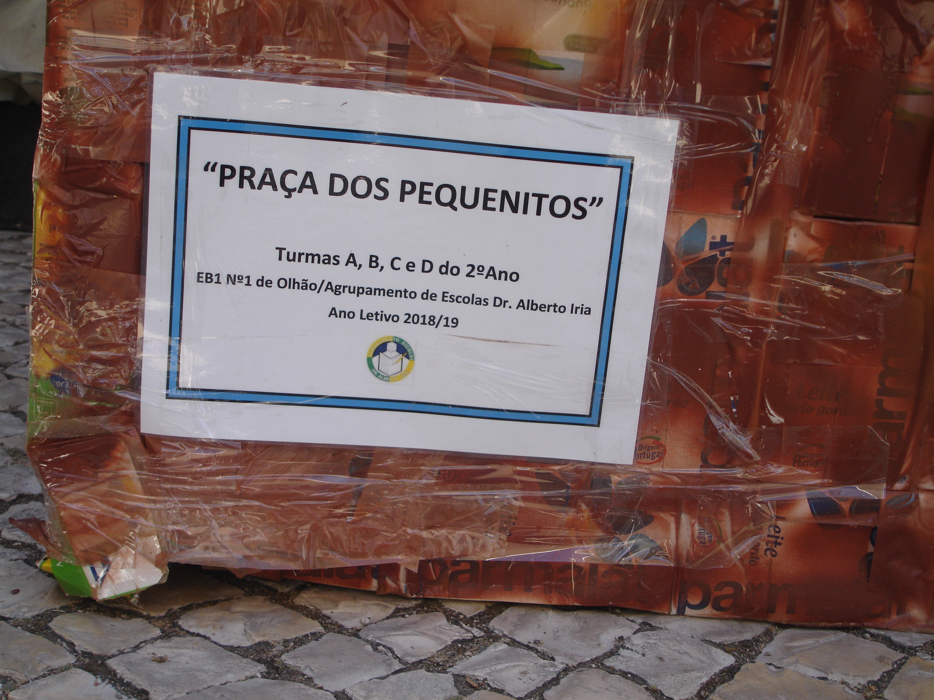 No âmbito das atividades da Semana da Criança e do Ambiente, dinamizada pela Câmara Municipal de Olhão, a decorrer entre os dias 4 e 7 de junho, cuja edição deste ano na cidade de Olhão, decorreu no Jardim dos Pescadores, junto à Ria Formosa, esteve em exposição um trabalho realizado pela escola EB1 do Agrupamento de Escolas Dr. Alberto Iria, elaborado a partir de embalagens de leite, intitulado: “Praça dos Pequeninos”. O objetivo desta iniciativa que contou com a colaboração dos Encarregados de Educação, procurou mostrar como a reutilização de embalagens de leite usadas poderá servir para construir espaços de diversão e convívio para os alunos.