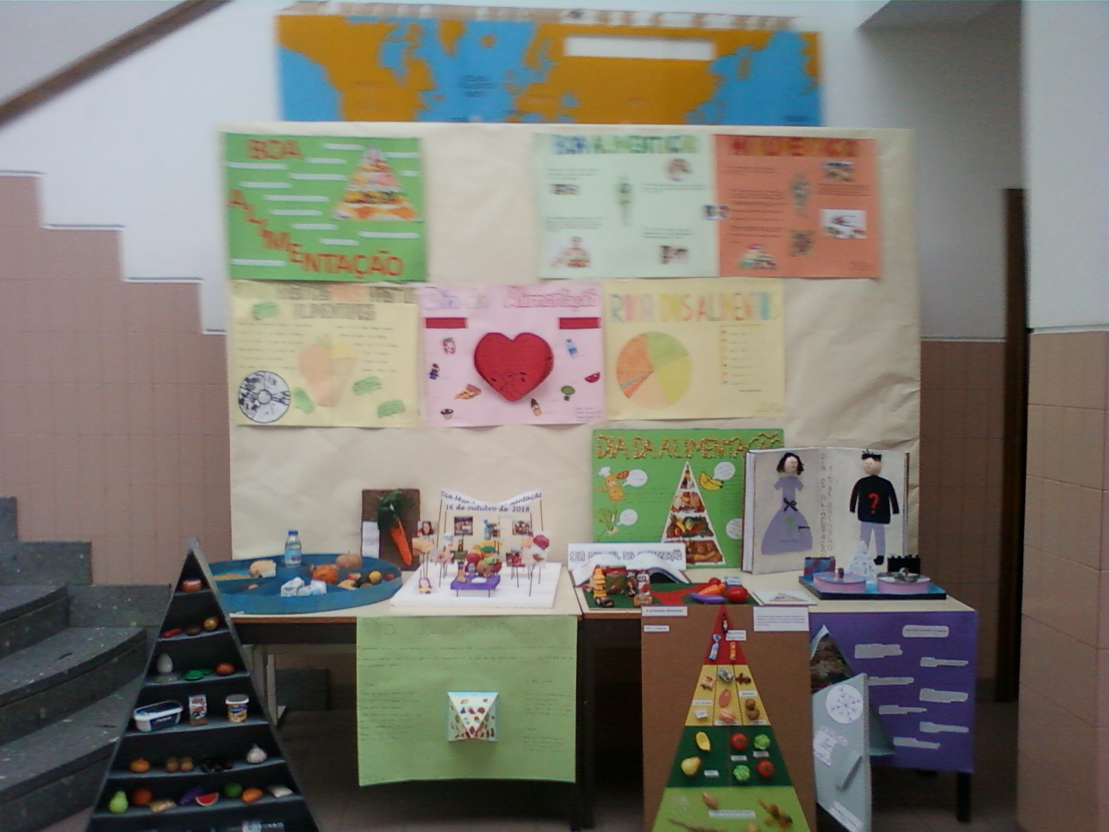 Os alunos do 9º ano foram convidados a elaborar cartazes alusivos a uma alimentação saudável, no âmbito do PES. Estes cartazes foram mostrados à comunidade escolar, através de uma exposição na Escola, no Dia Mundial da Alimentação. Neste mesmo dia, foram exibidos, também na Escola, alguns vídeos sobre a temática, nomeadamente “Fome zero”, da FAO.