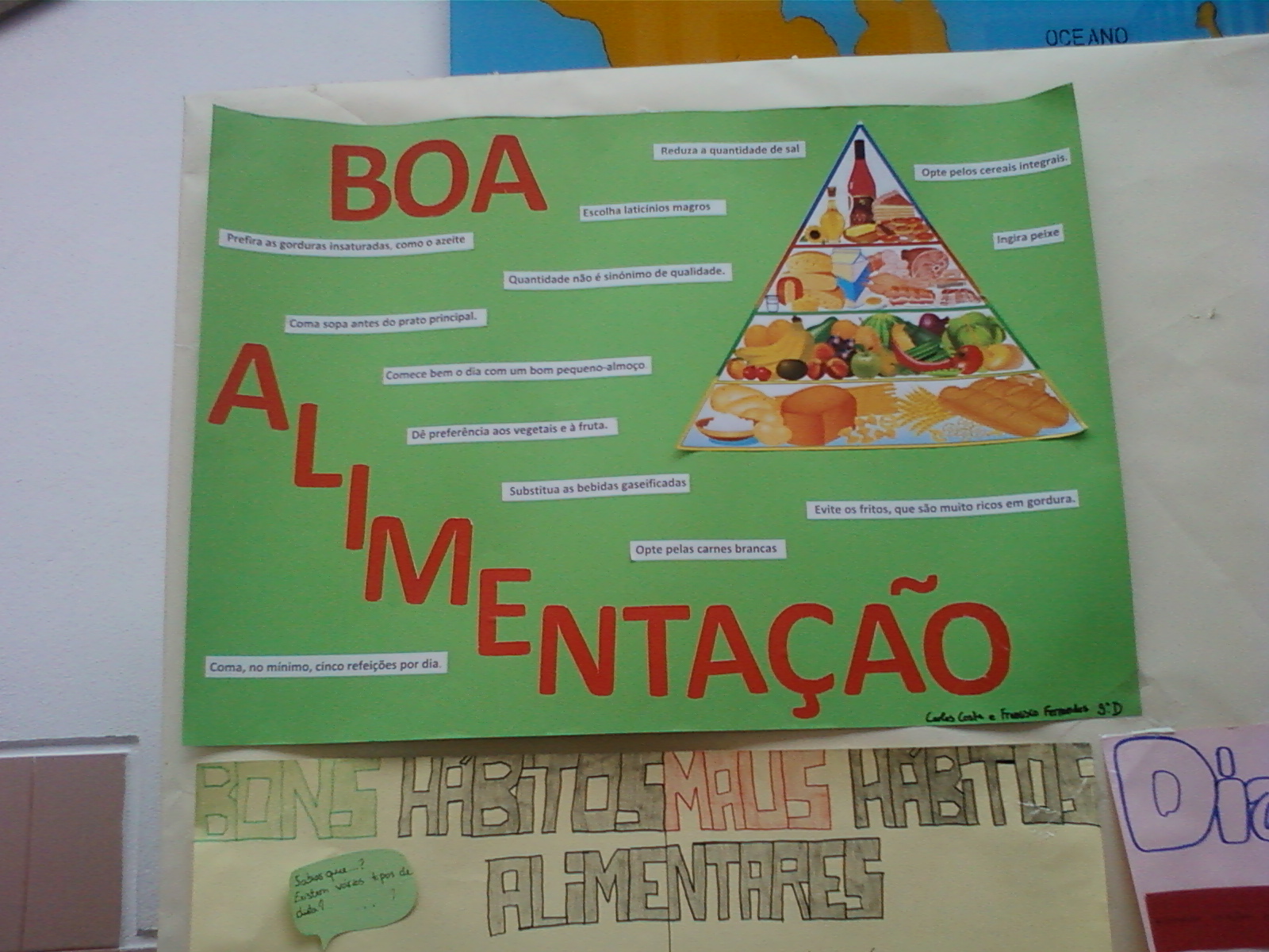 Os alunos, que participaram ativamente na construção dos cartazes, manifestaram empenho na sua concretização e tiveram oportunidade de refletir sobre modalidades de alimentação saudável.