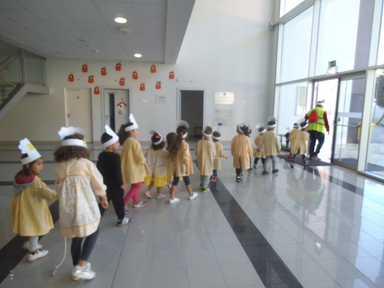 Hoje a sala amarela da nossa Escola conta-nos uma história sobre algo que os meninos viram quando foram passear. Saímos da escola, com os nossos chapéus de cozinheiro na cabeça, para fazermos broas, na Sede do Milharado, pois aproximava-se o Dia de Pão por Deus.