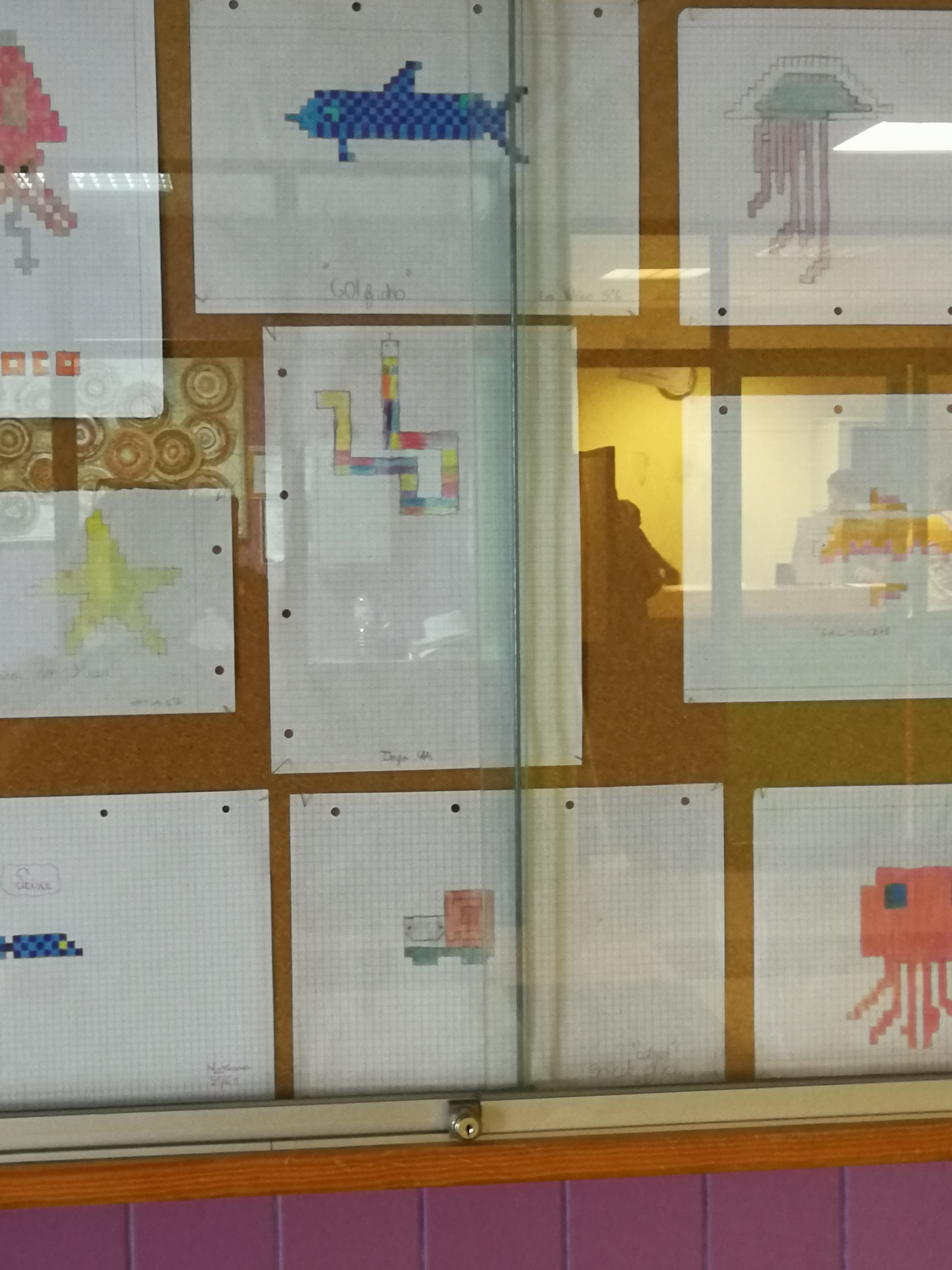 – Representação visual de animais do estuário do Sado, em papel quadriculado, construídos e pintados quadricula a quadricula, ou seja, ponto a ponto (pixel).