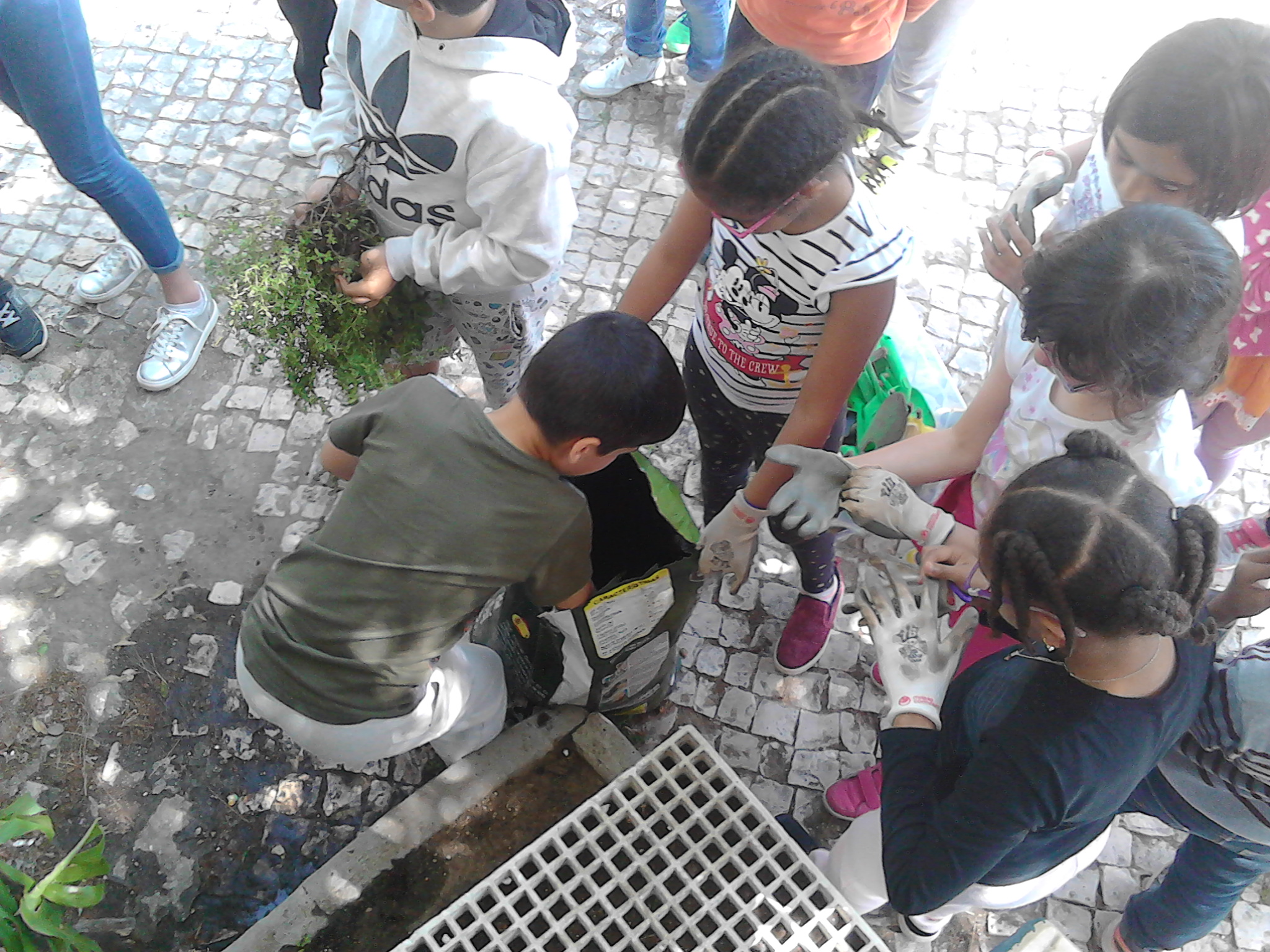 Todos os alunos queriam realizar as diversas etapas. Assim, uns ajudaram na abertura dos buracos, outros davam o composto, outros as plantas e, os restantes colaboraram na rega.