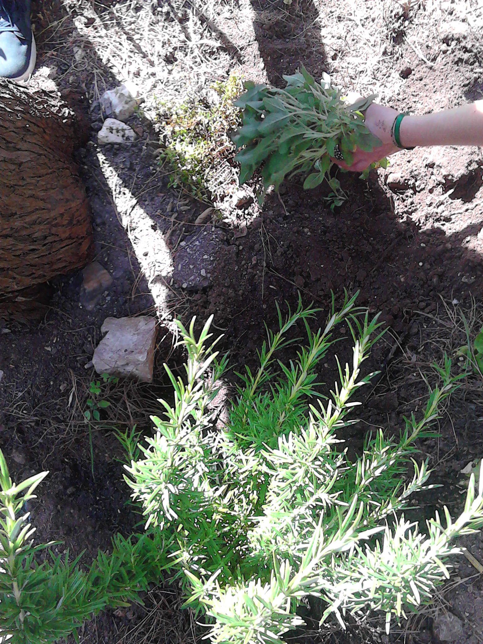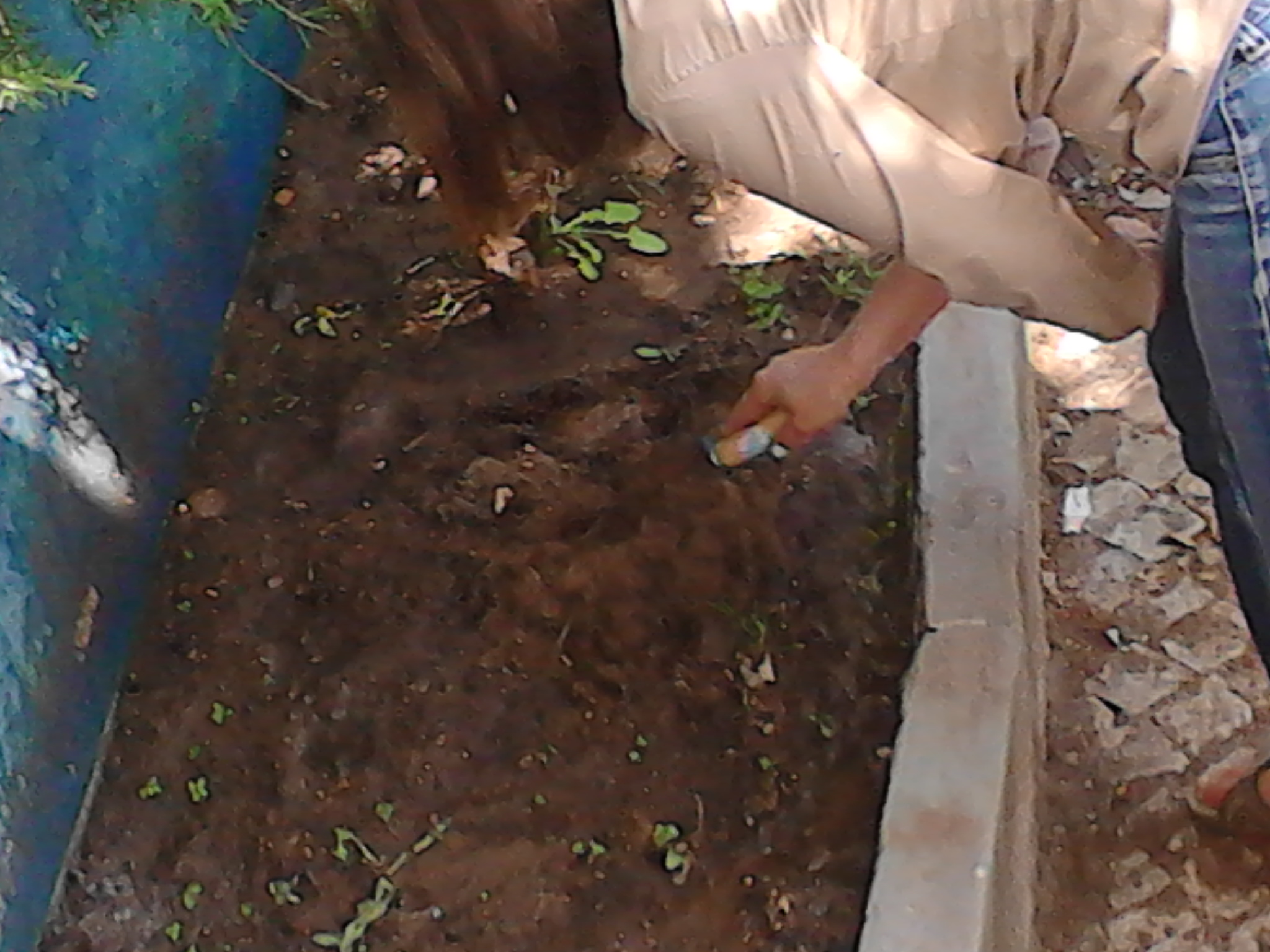 - coentros vietnamitas. De seguida foram abertos os buracos, em número de acordo com a quantidade de vegetais, cada buraco levou composto e depois a respetiva planta. Por fim, foram regados.