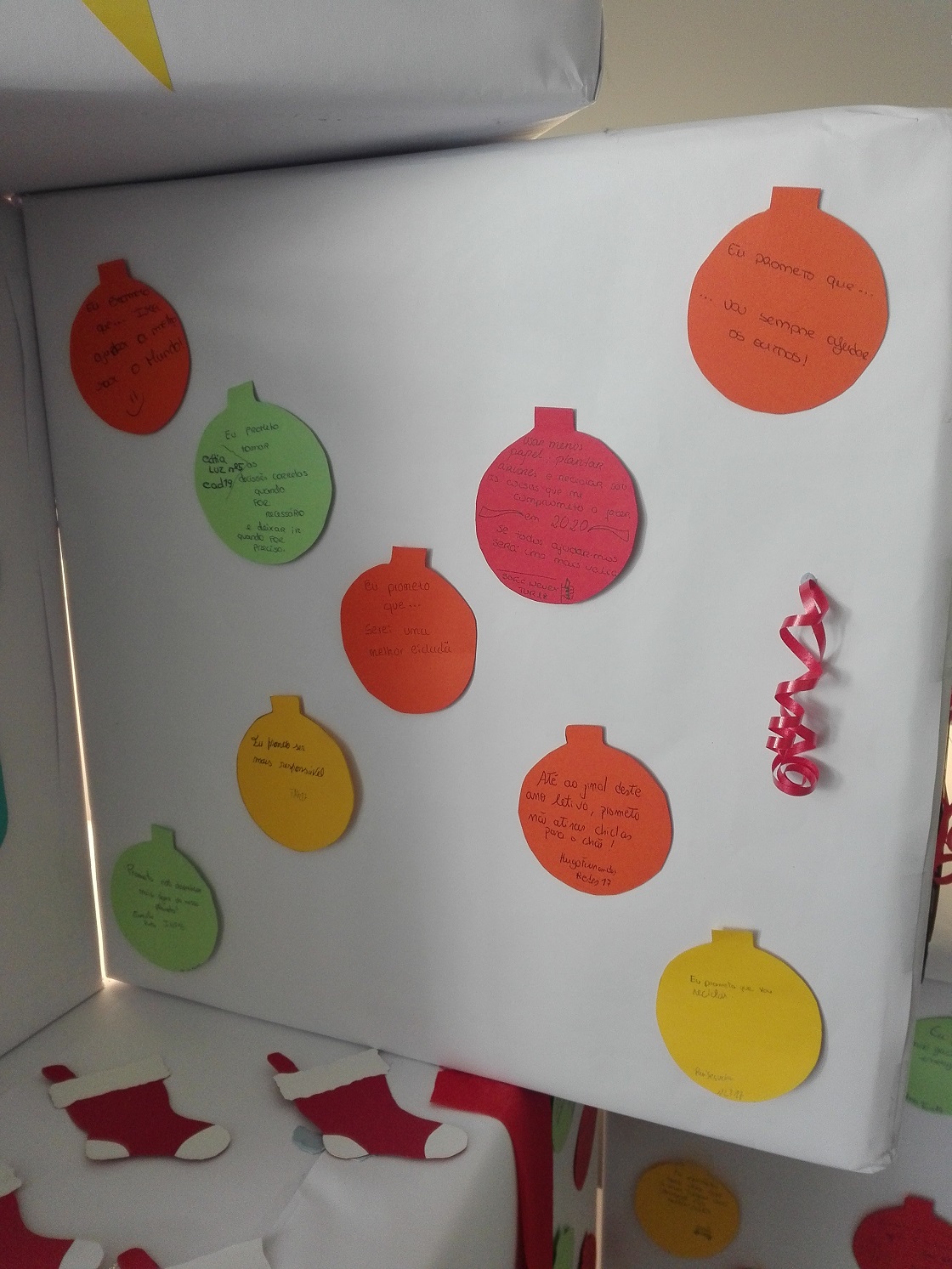 Houve uma forte participação, a maior parte das turmas participaram, foram seleccionados os compromissos para colocar no átrio da escola.