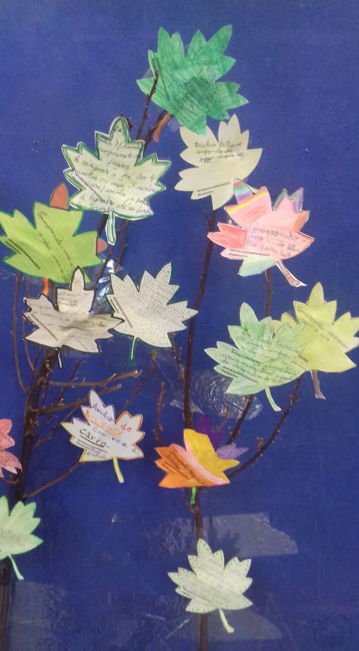Foi enviado para casa de cada criança um papel em formato de “folha” e uma informação com um pedido de colaboração aos encarregados de educação/ famílias a participarem na construção da árvore dos compromissos com o compromisso devidamente identificado sobre o que podem e querem fazer “pelo clima”. Os alunos após as suas famílias terem escrito o seu compromisso ilustraram a sua “folha” que foi colocada na árvore que se encontra no polivalente.