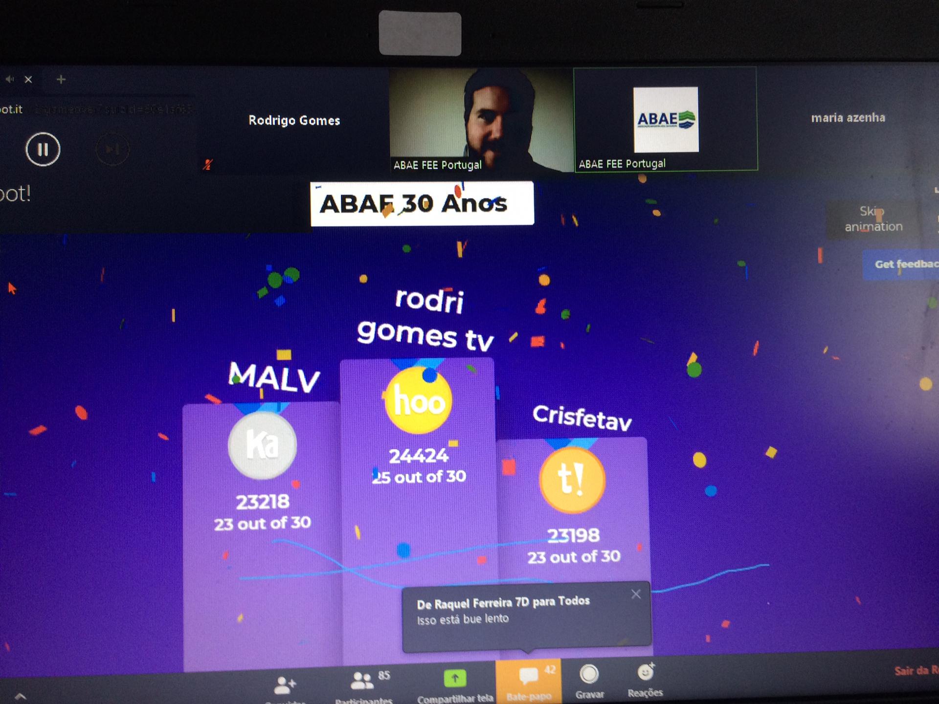 A atividade #EcoEscolasFicaEmCasa#ABAE#Kahoot#ZOOM#EcoEscolas#fiqueemcasa decorreu a 27 de março. Os alunos da EScola Básica Trigal Santa Maria, Tadim, do 6º ano aderiram, tendo o aluno do 6ºC Rodrigo Gomes sido vencedor.