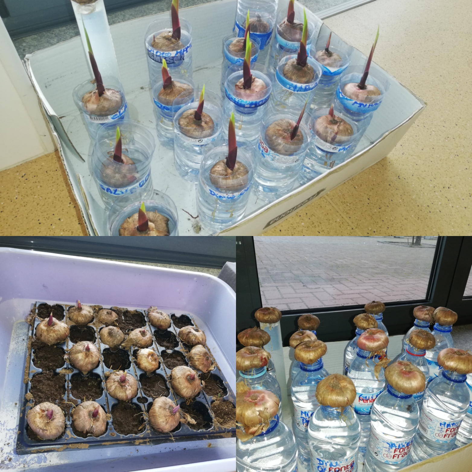 Desta vez foi com bolbos, na água e no solo, observado o seu desenvolvimento.