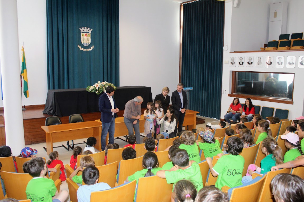 Os alunos foram atenciosamente recebidos no Salão Nobre dos Paços do Concelho de Águeda pelo executivo municipal completo: presidente, Jorge Almeida, vice, Edson Santos e vereadores, do pelouro da Educação, Marlene Gaio que saudou a iniciativa.