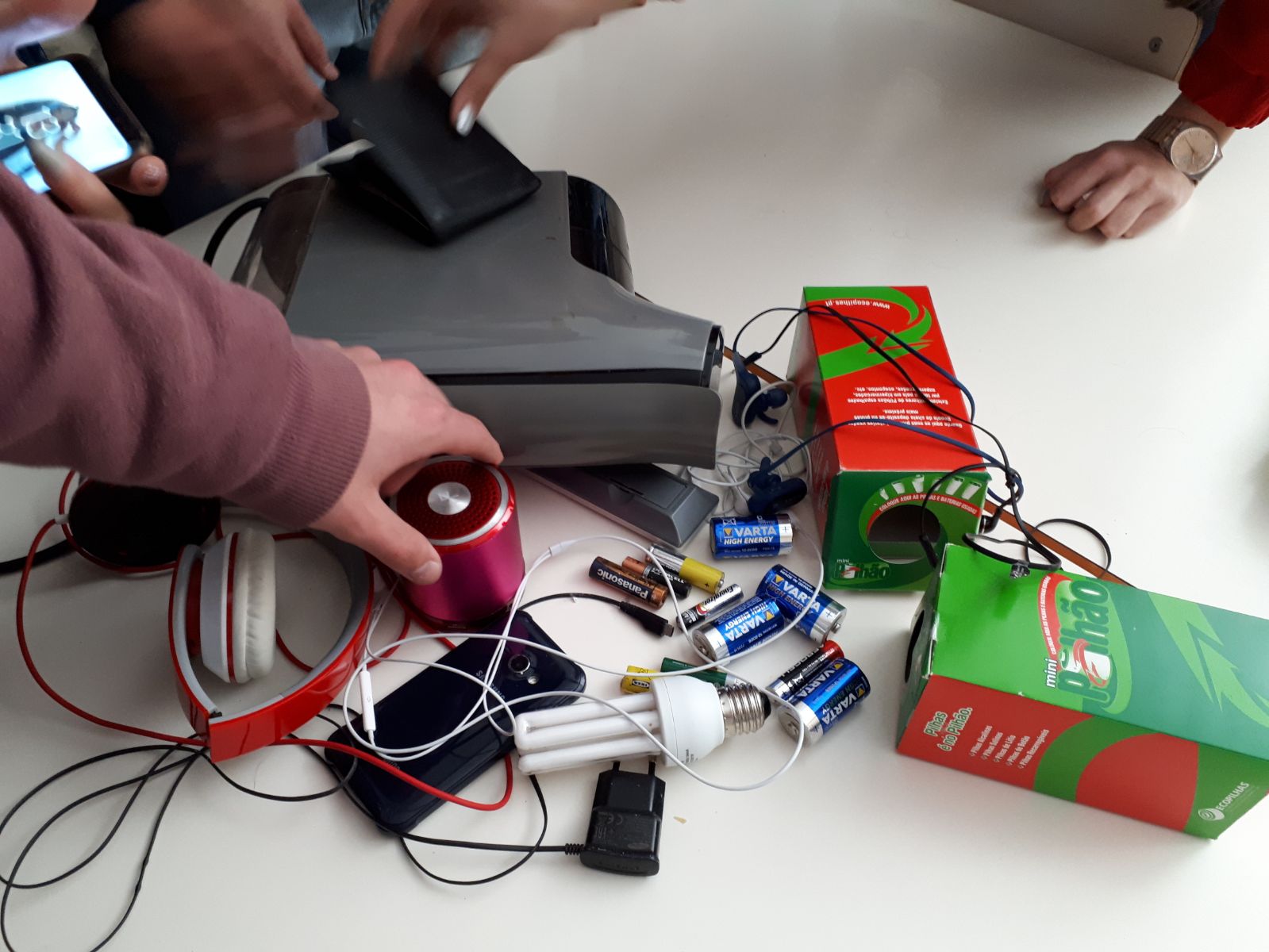 Recolha, Reutilização e Recolha de pilhas, lâmpadas e pequenos electrodomésticos por parte de alguns dos alunos da escola.