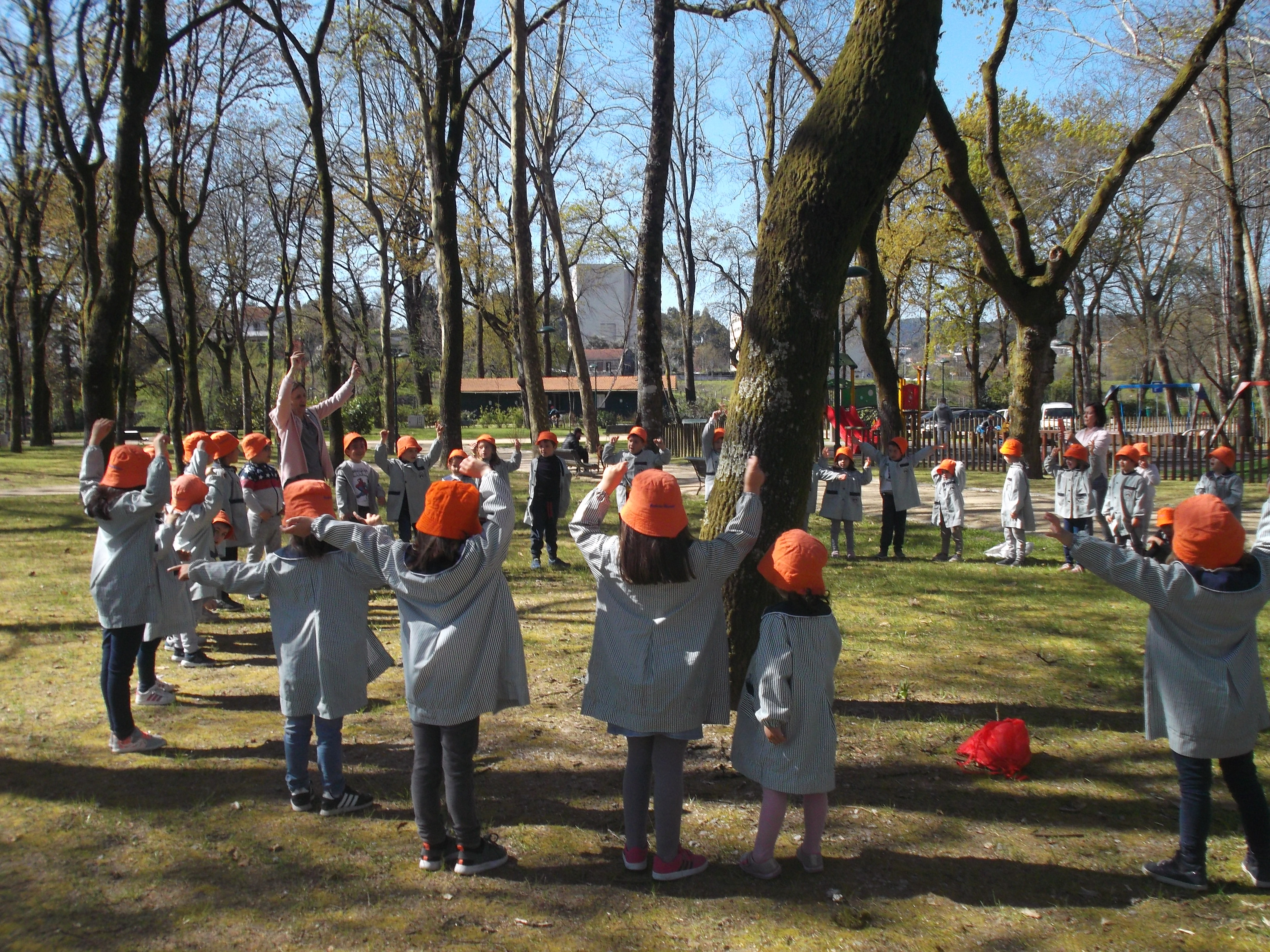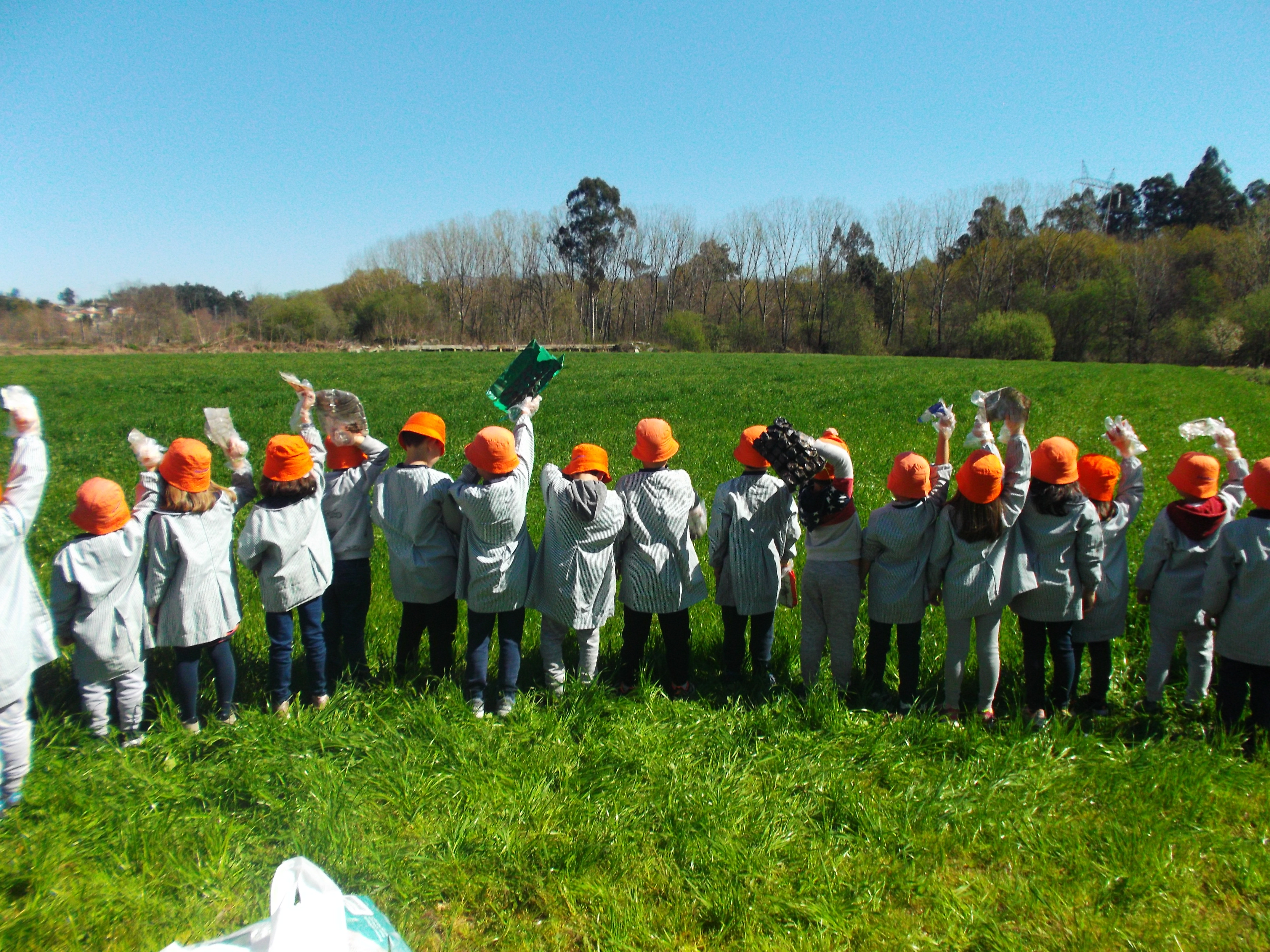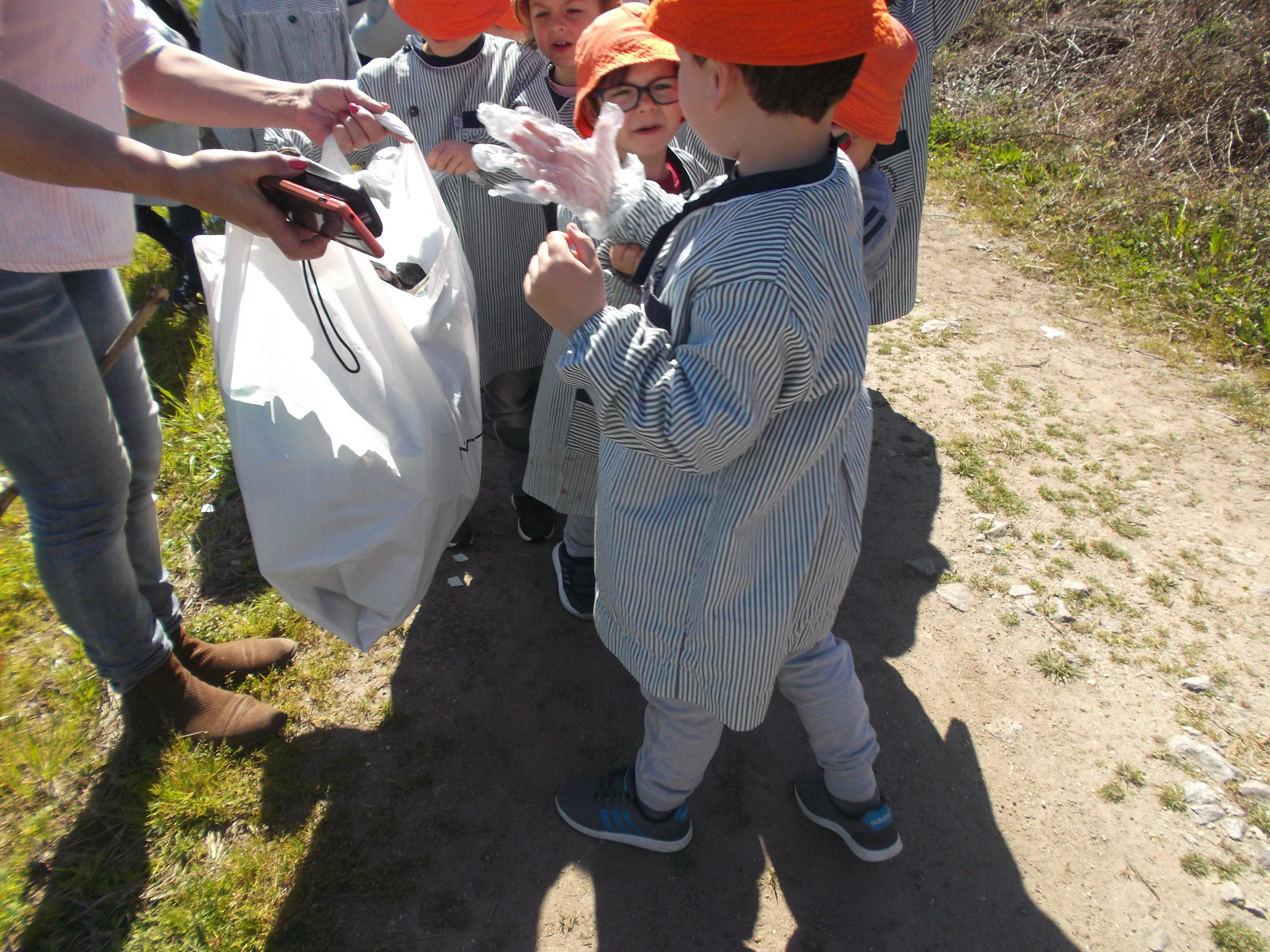 As crianças foram convidadas a passear na natureza para celebrar a chegada da primavera, vendo as transformações ocorridas, ouvindo o coaxar das rãs que saíram da hibernação, os passarinhos, observando os rebentos nas árvores, antes sem folhas. Levamos luvas para apanhar o lixo que encontrássemos no caminho, ajudando, assim, a natureza a proteger-se de danos causados pela mão humana.