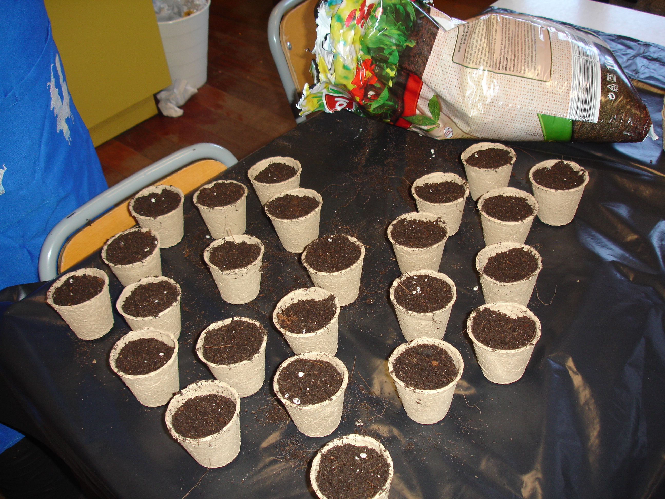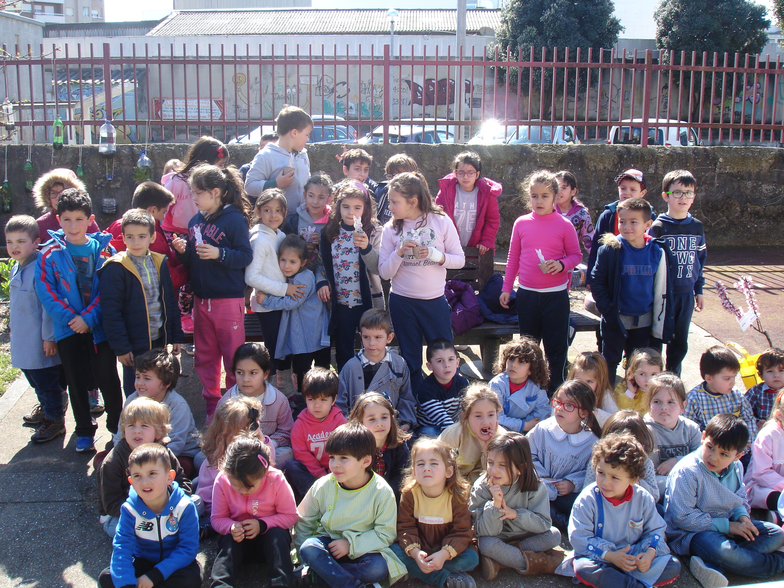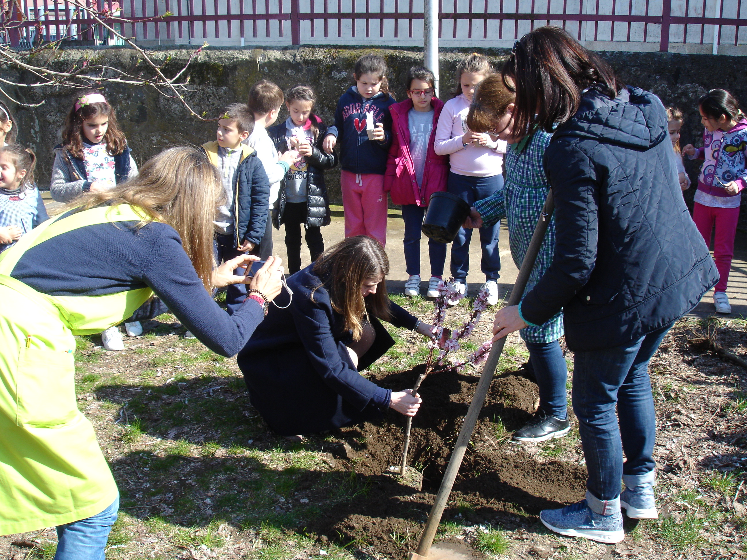 Para celebrar a chegada da primavera, os alunos do 2º C, da EB Padre Manuel de Castro fizeram uma visita ao JI da mesma escola. Ofereceram-lhes vários vasinhos semeados com salsa e uma nova árvore para o seu canteiro: um pessegueiro em flor.
