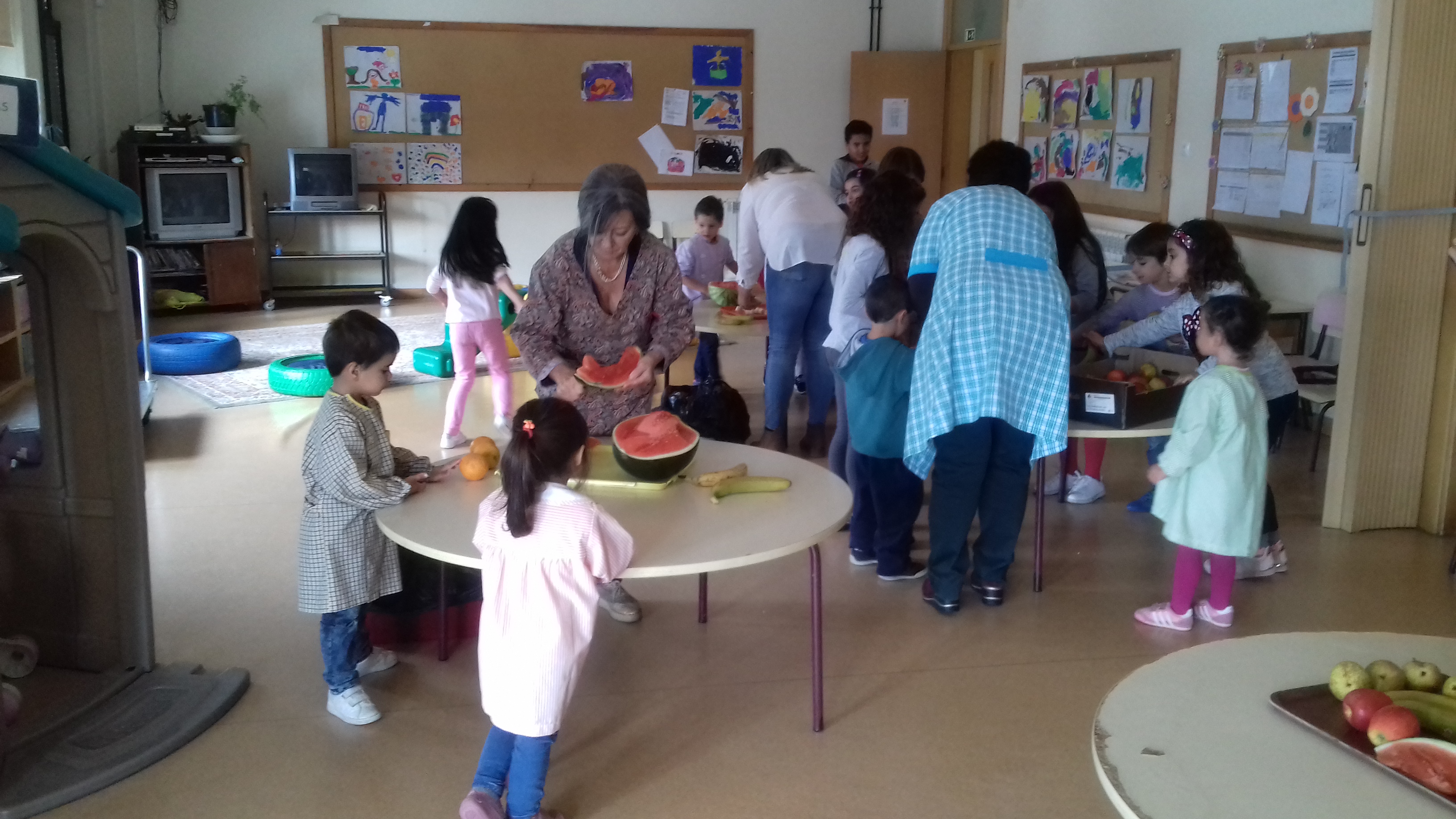 Os discentes do ensino pré-escolar e do primeiro ciclo protagonizaram a comemoração deste evento, construindo cartazes alusivos ao dia, disputando jogos didáticos e fazendo deliciosas espetadas de fruta.