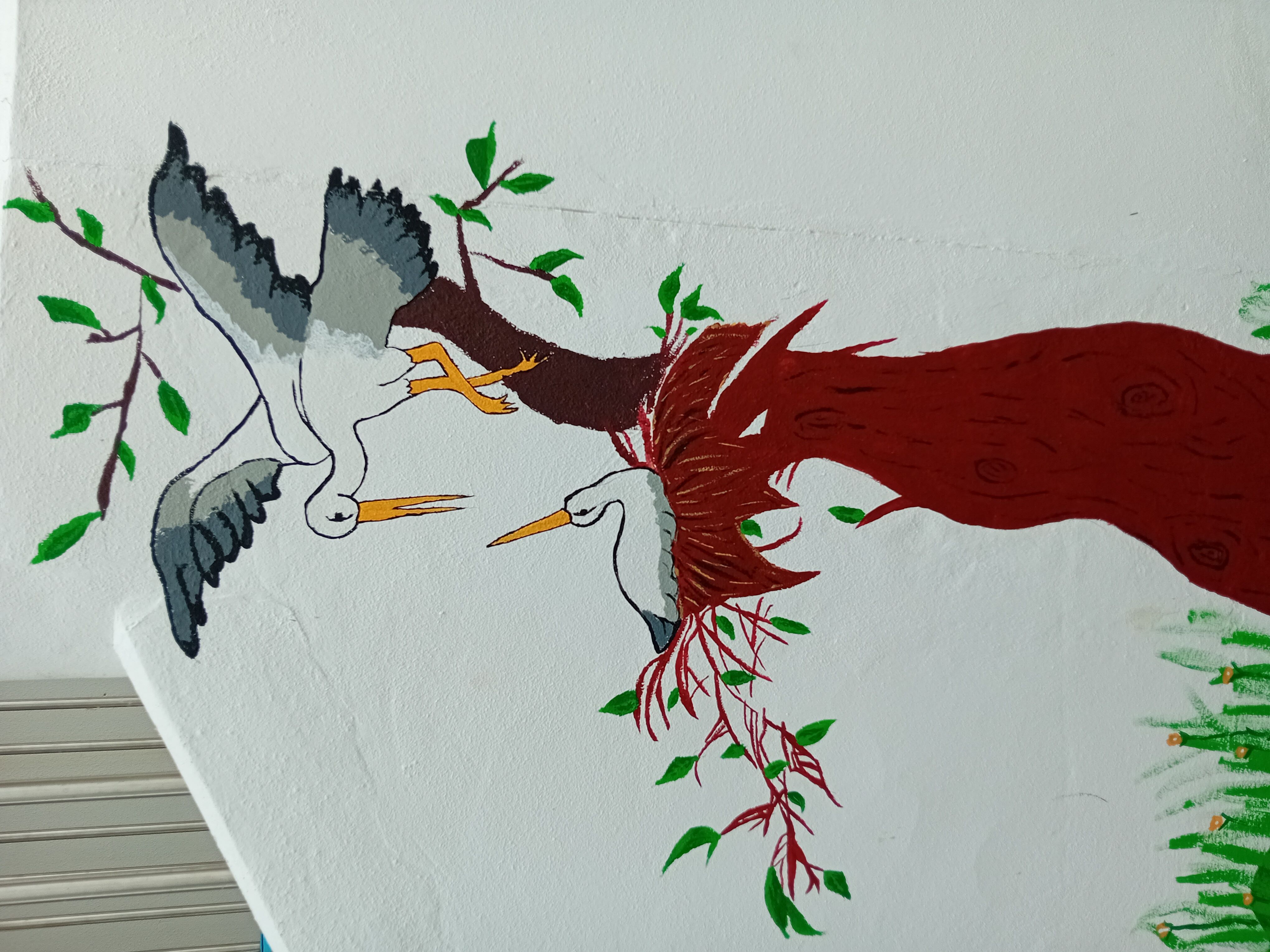 Um pouco mais tarde, os alunos do Conselho Eco Escolas, com a colaboração dos alunos do 6º ano, elaboraram pinturas num muro e numa sarjeta, no recinto escolar, no âmbito dos Projetos “Muros com vida” e “O Mar começa aqui”, que foram concluídas posteriormente pelas alunas do Clube de Artes.