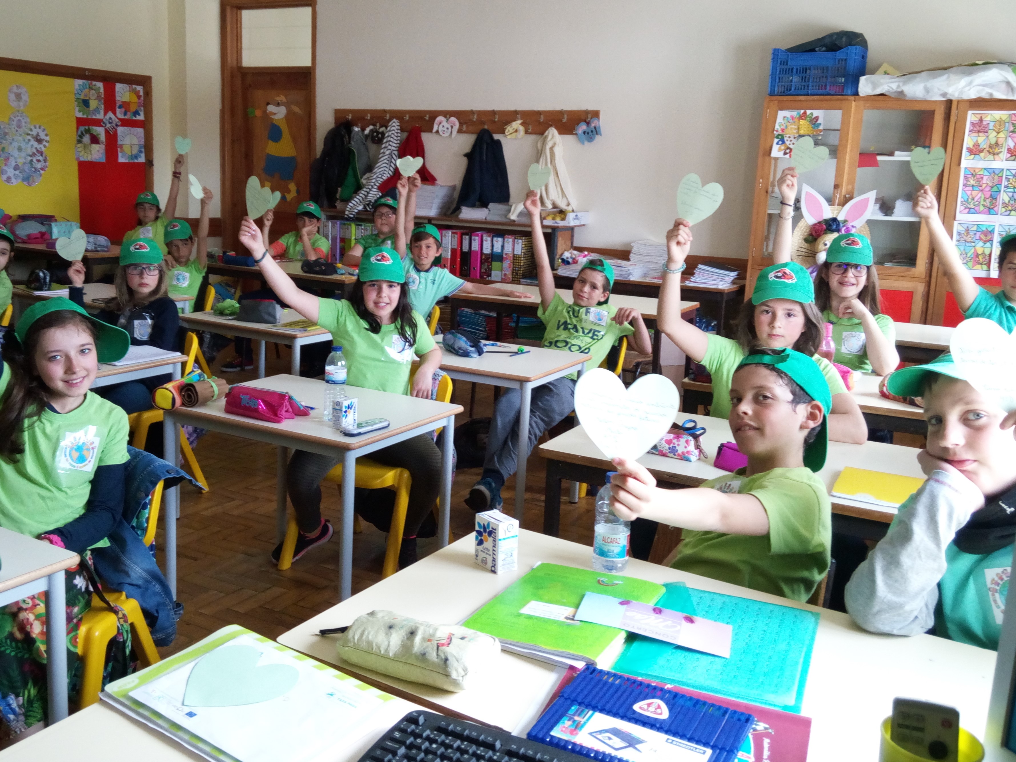 Os alunos realizaram na semana anterior ao dia 23 de Abril, dia Mundial da Terra, vários corações onde redigiram frases criadas por eles relativas a questões de sustentabilidade e de valores de cidadania que pretendem ver implementados no planeta Terra.