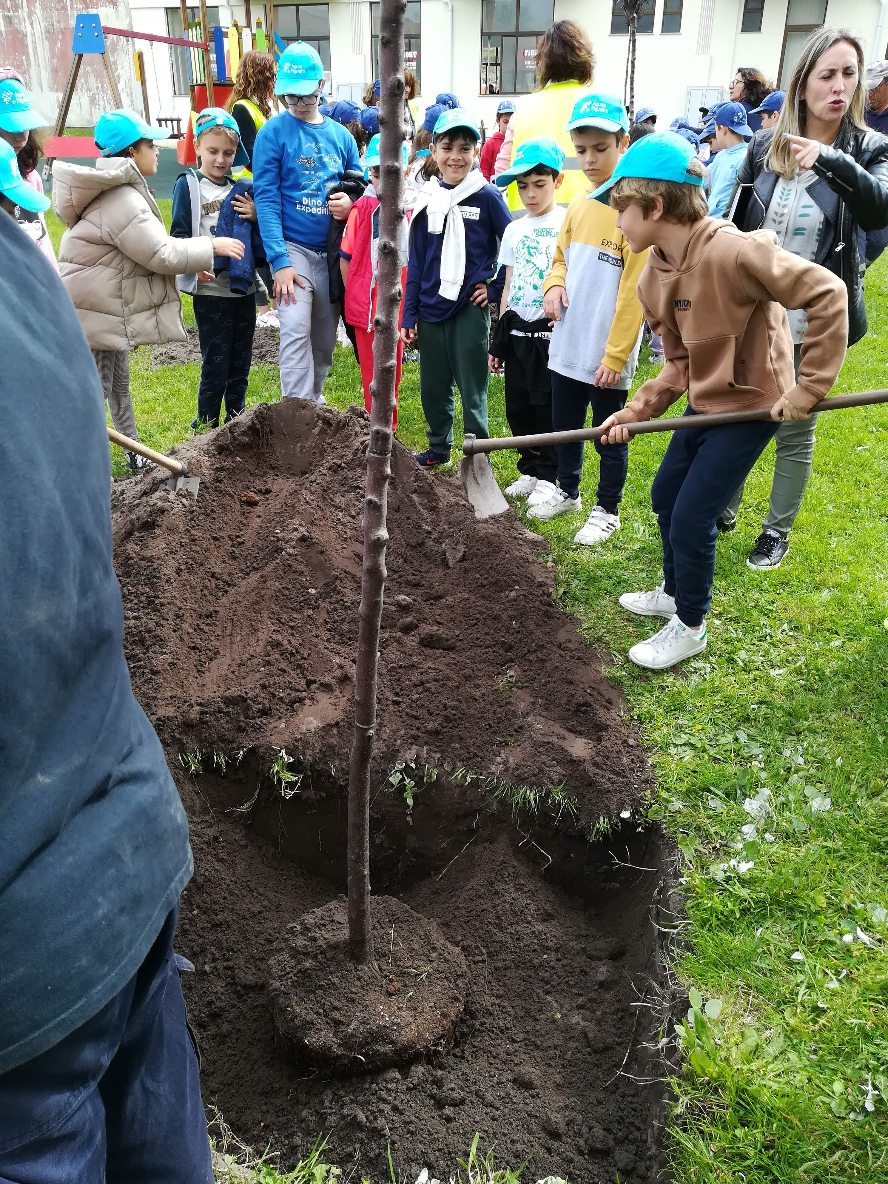 Os alunos participaram entusiasticamente na plantação das árvores.