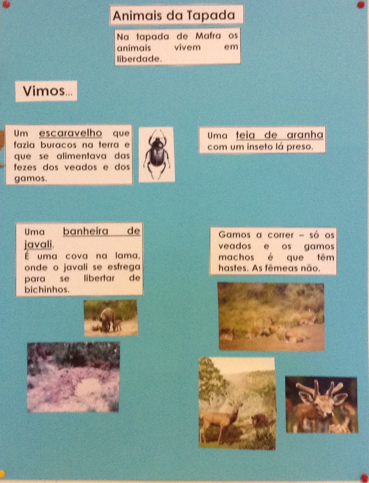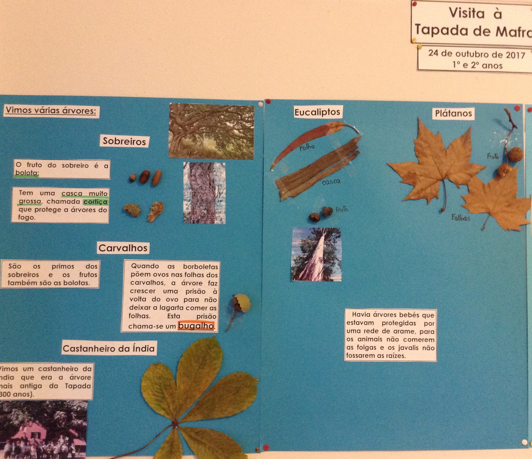 Os alunos do 1.º e 2.º anos visitaram a Tapada de Mafra e ficaram a conhecer algumas espécies florestais do nosso país e alguns animais.