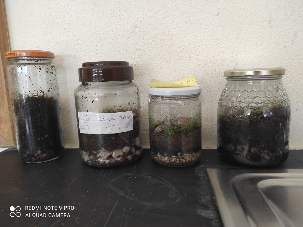 Terrários criados e apresentações explicativas sobre a sua construção e a sua importância.