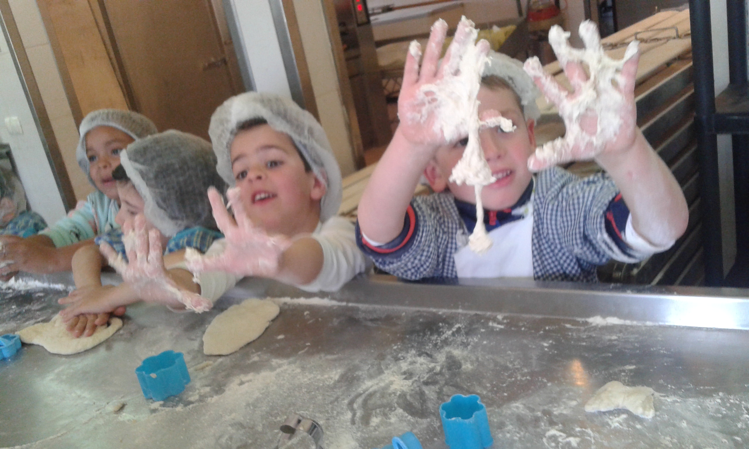 Numa articulação com a família da Joana, foi possível fazer esta visita pedagógica à padaria. As crianças prepararam a massa do pão, colocaram a farinha na balança e pesaram-na, fizeram pães com formas de estrelas, corações e borboletas. Perceberam porque existe pão branco e escuro, cheiraram a farinha e sentiram a massa – uma experiência única que, de uma forma lúdica, trouxe conhecimento e o prazer de fazer o pão. Cada criança levou um folar com um ovo que deu expressão à tradição da Páscoa.