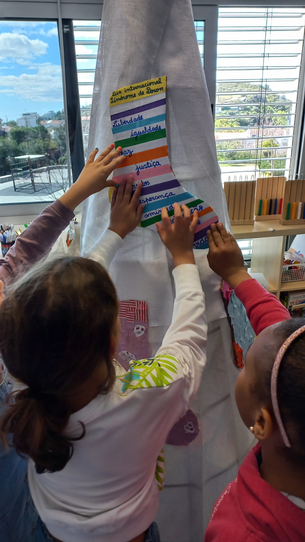 Um dia multicolor, na comemoração de diferentes datas temáticas! A participação ativa no desfio lançado pela escola, para comemoração do Dia Mundial da Trissomia 21. A envolvência das famílias, com destaque para a doação de uma família de diferentes tipos de amostras de papel que possibilitaram a realização de trabalhos diferentes!