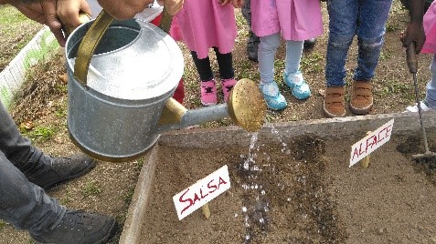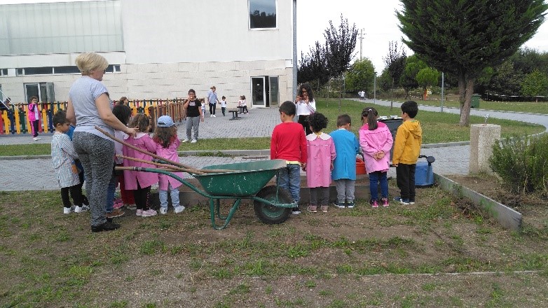 Posteriormente, os alunos do pré-escolar semearam ervas aromáticas, iniciando assim a horta biológica da Escola. Ao longo do ano, os alunos vão plantar e cultivar alimentos, que serão utilizados na sua alimentação.
