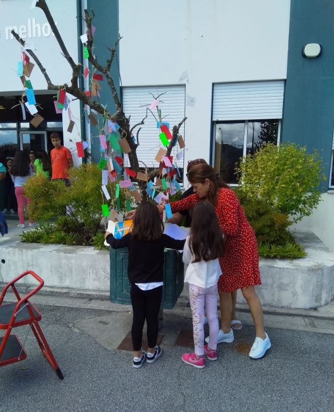 As turmas do 1º ciclo trabalharam da mesma forma mas nas últimas aulas do dia, das 15h às 17h, colocando na árvore os respetivos compromissos.