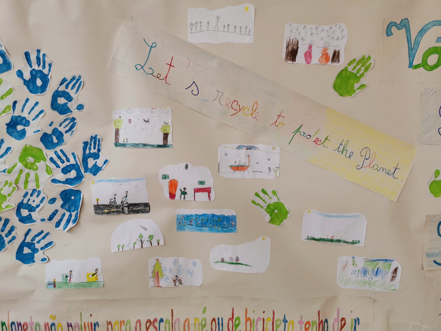 - Construção de um mural ” Todos Unidos pelo planeta” com as frases, ilustrações e o Planeta Terra.