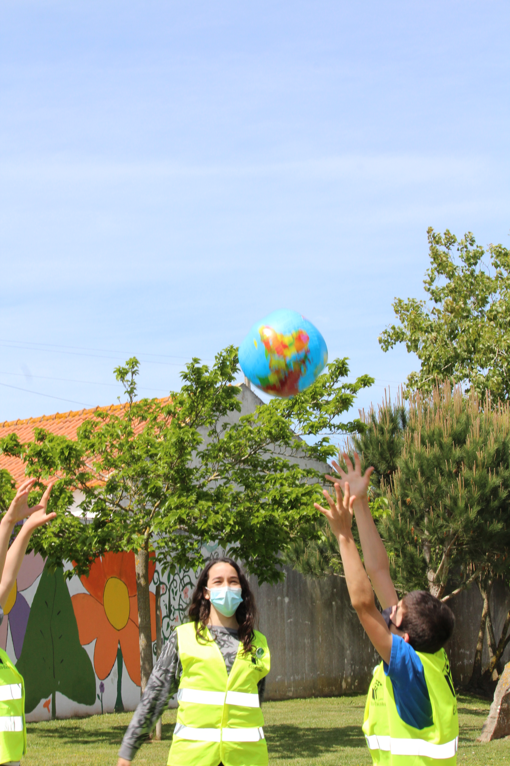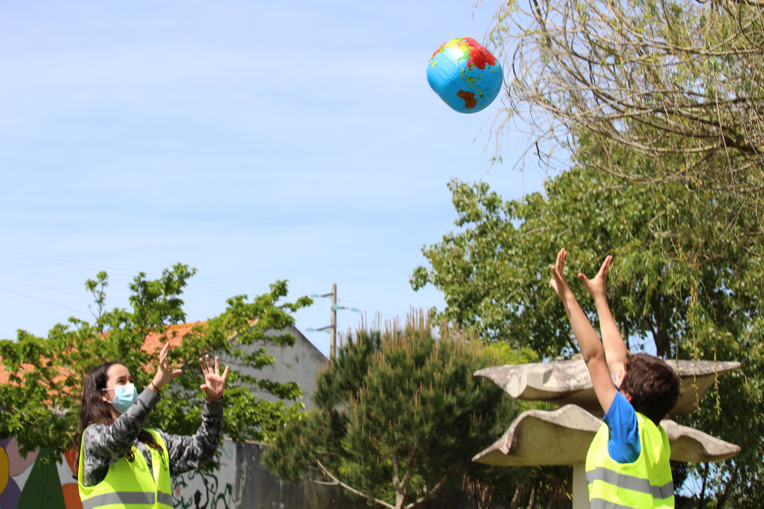 Cada aluno passa a bola/planeta e evoca um R: Recusar, Reutilizar, Repensar, Reciclar, Reduzir